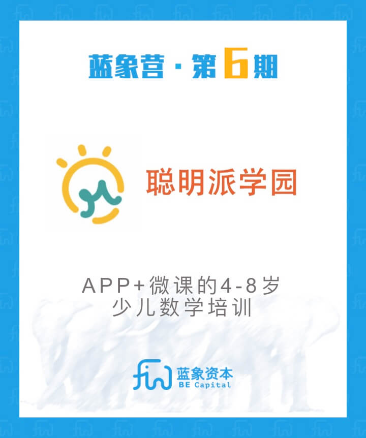 藍象資本是專注教育領域的早期基金,項目按照1000萬元估值投資30或80萬元。每年2期“藍象營”加速計劃,每期持續6個月。